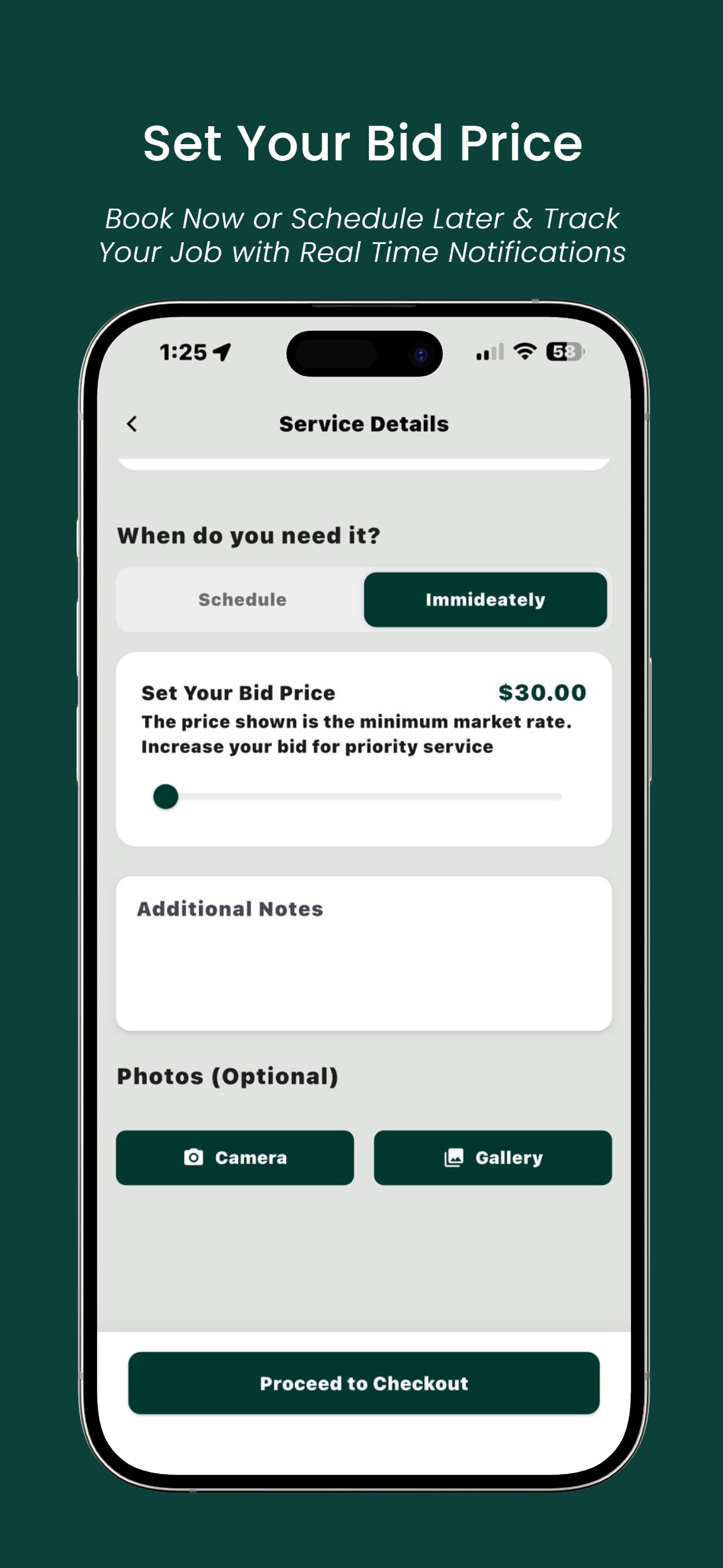 Choose your service, set a higher bid for priority scheduling and secure your booking instantly. Higher bids are usually completed within 6 hours and most services are handled within 24 hours .